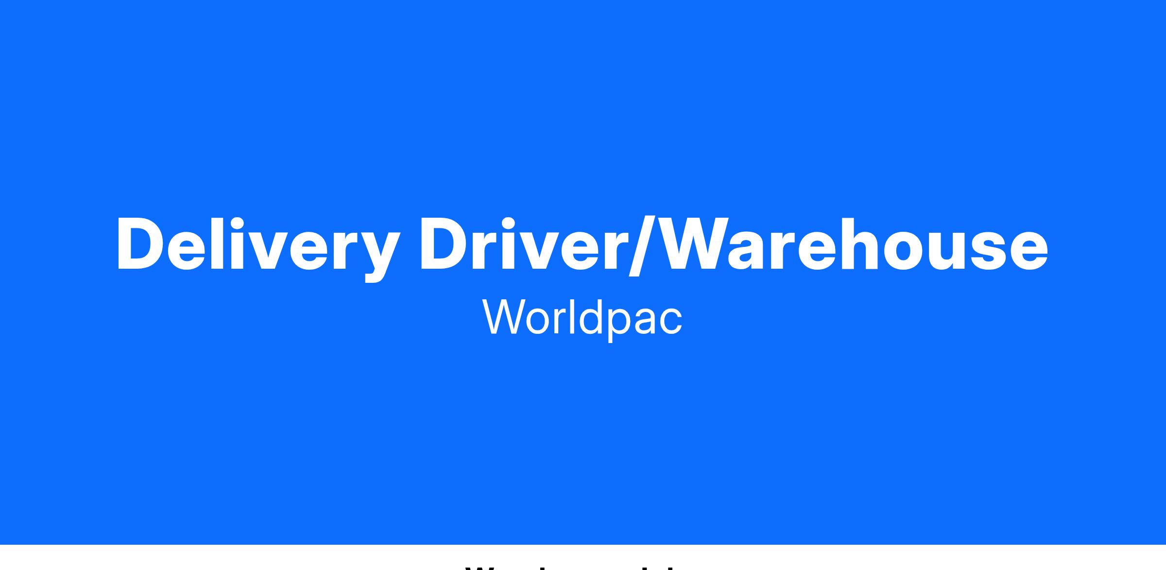 Worldpac is an Equal Opportunity Employer. We celebrate diversity and are committed to creating an inclusive environment for all employees. All qualified applicants will receive consideration for employment without regard to race, color, religion, gender, sexual orientation, gender identity or expression, national origin, disability, or veteran status.