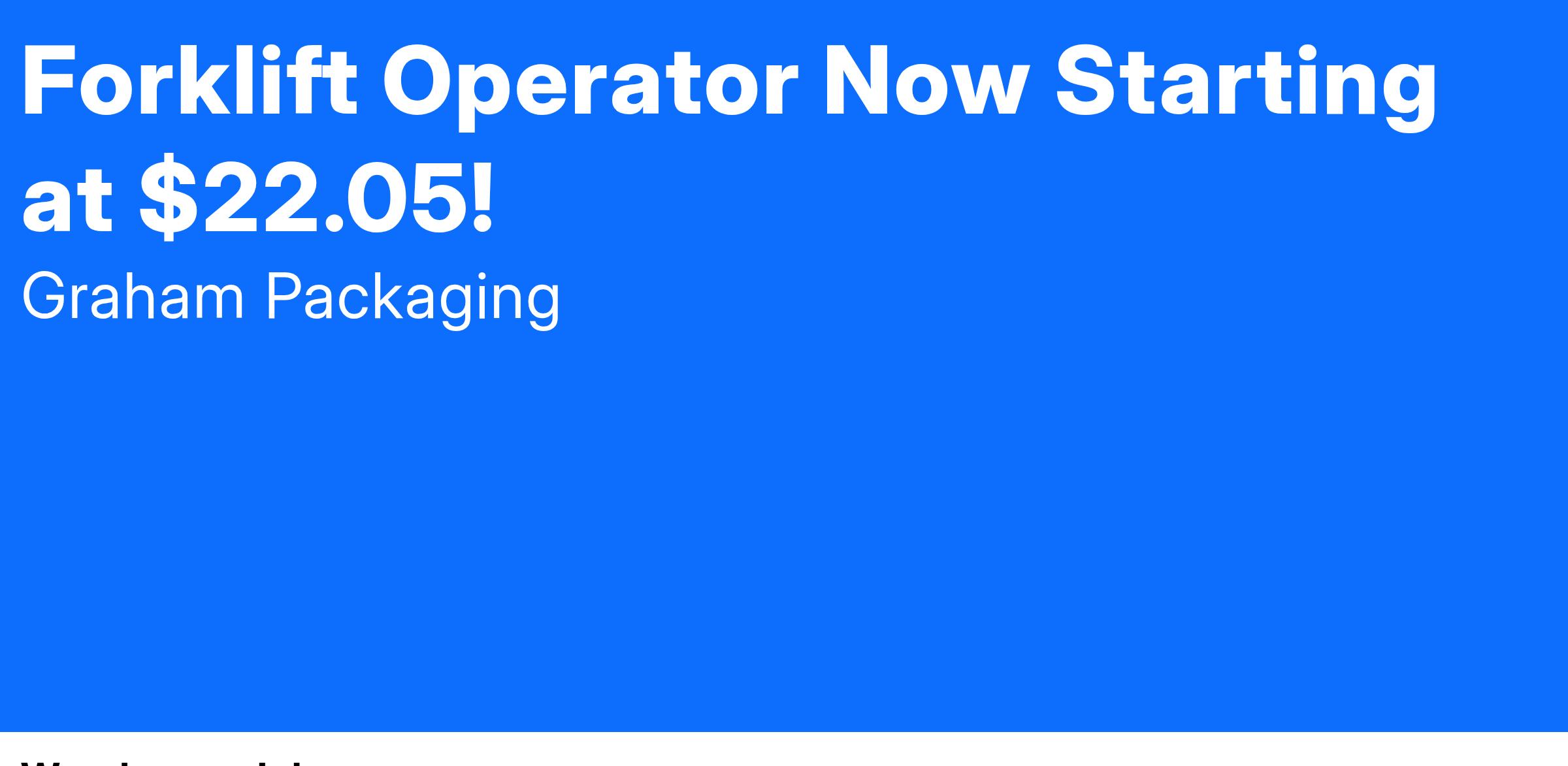 Graham Packaging Company is looking for a Forklift Operator based in Atlanta, Ga PET Plant.