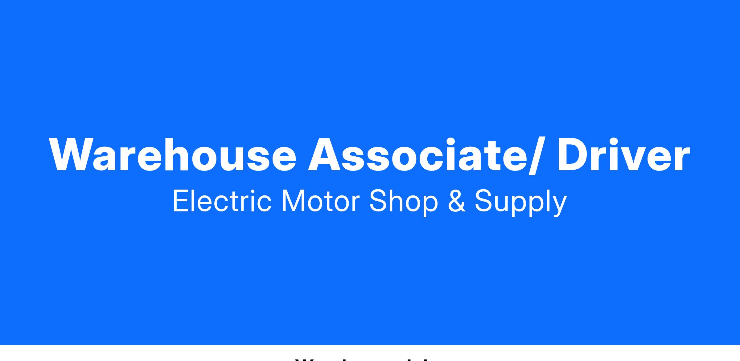 Warehouse Associate/ Driver