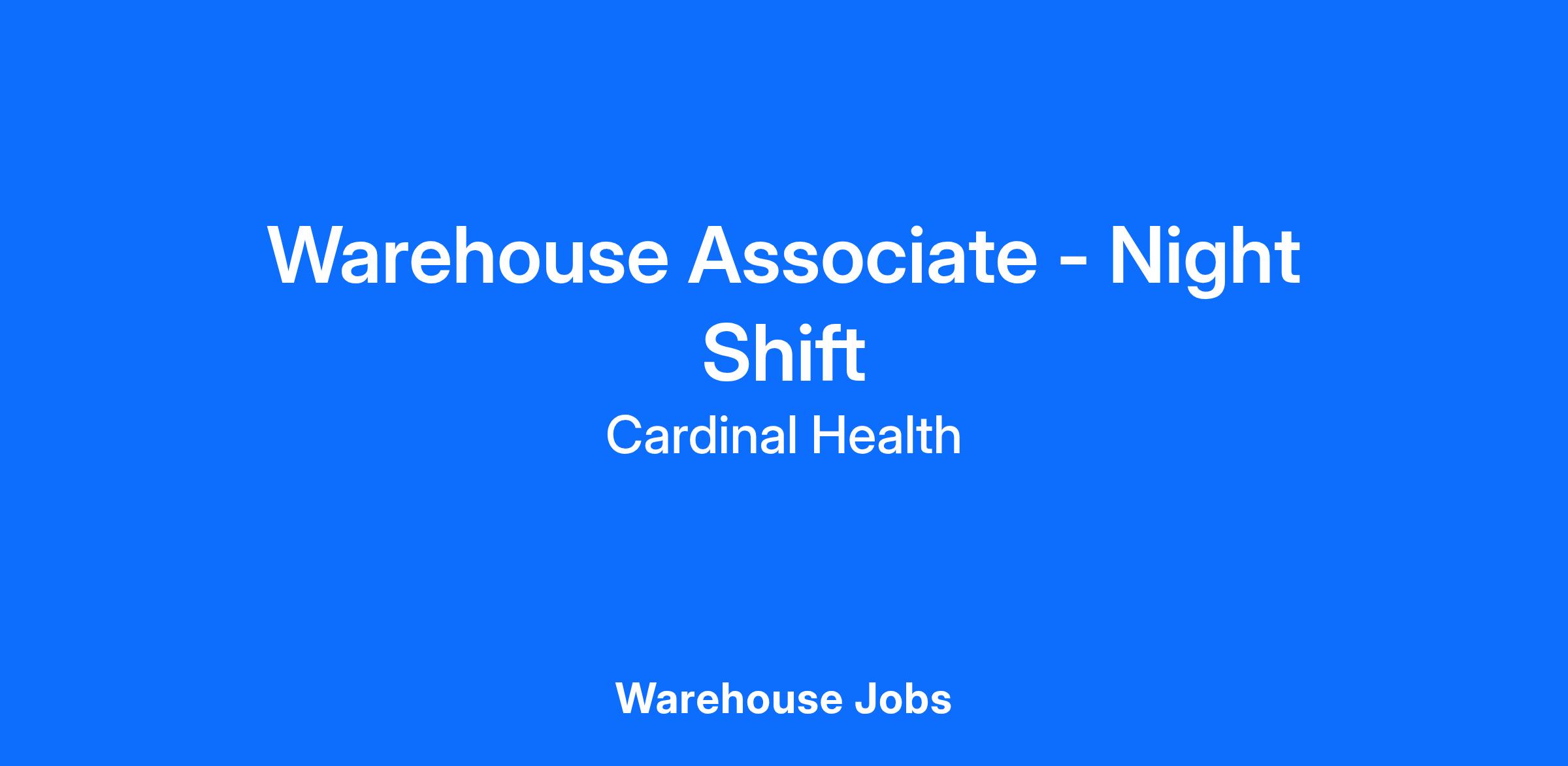 Work Location: Cardinal Health, 3000 Mark IV Pkwy. Fort Worth, Texas, 76106