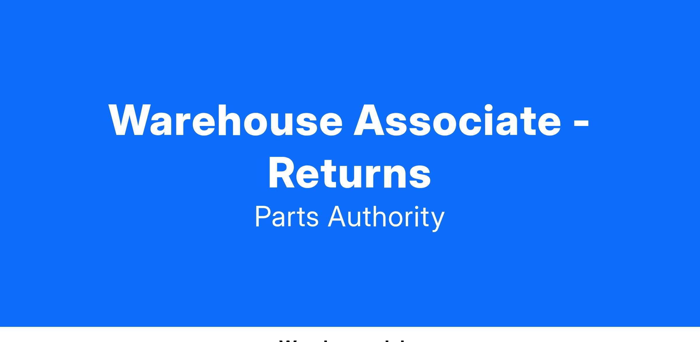 Each team member plays a vital role in our success. We are rapidly expanding and looking for candidates to join our family! So, if you enjoy full-time employment with the opportunity for advancement, look no further. Join our Parts Authority Team today as a Warehouse Associate - Returns.