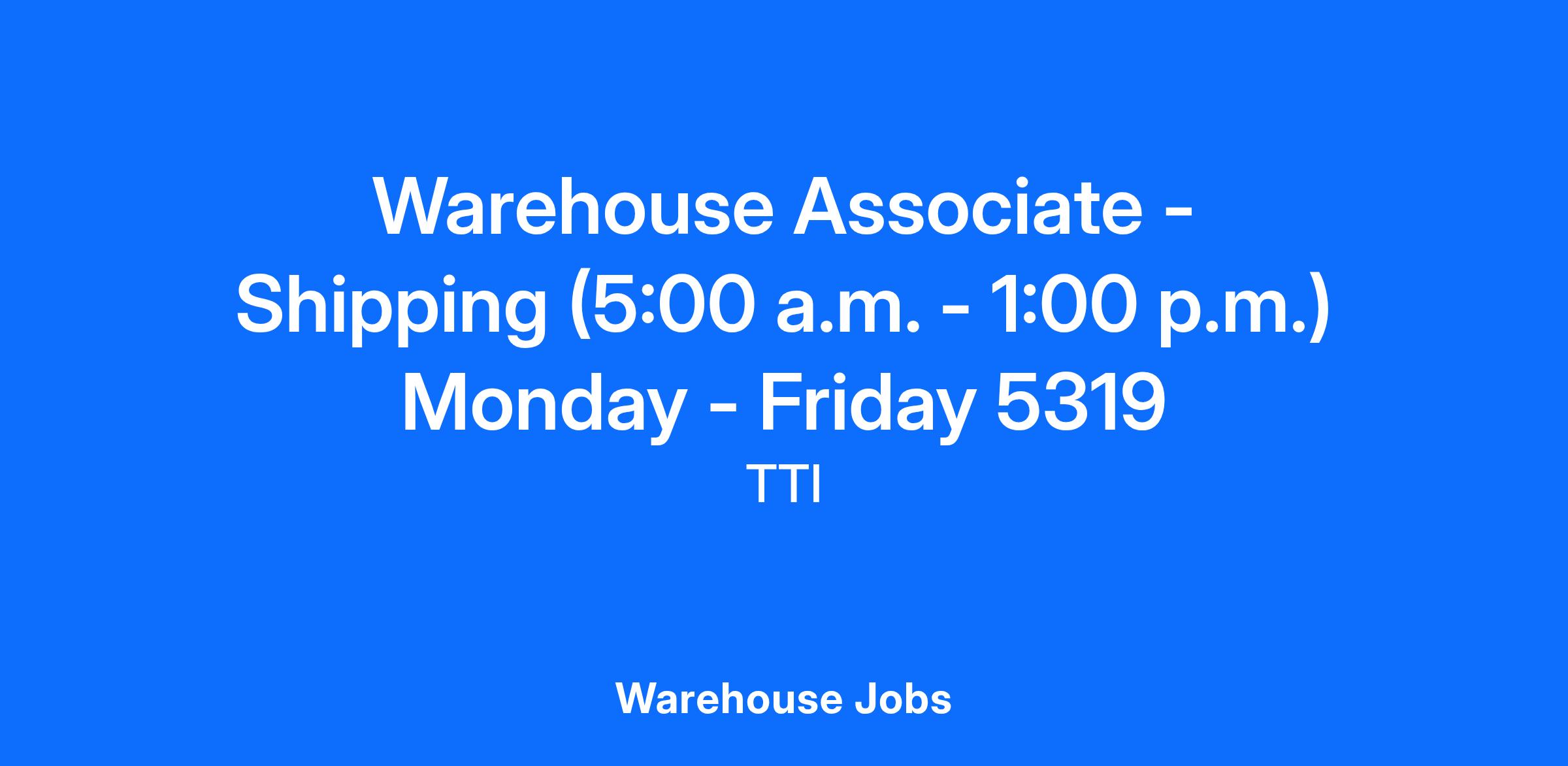 High School Diploma or General Education Degree (GED) is required; prior warehouse experience is preferred.