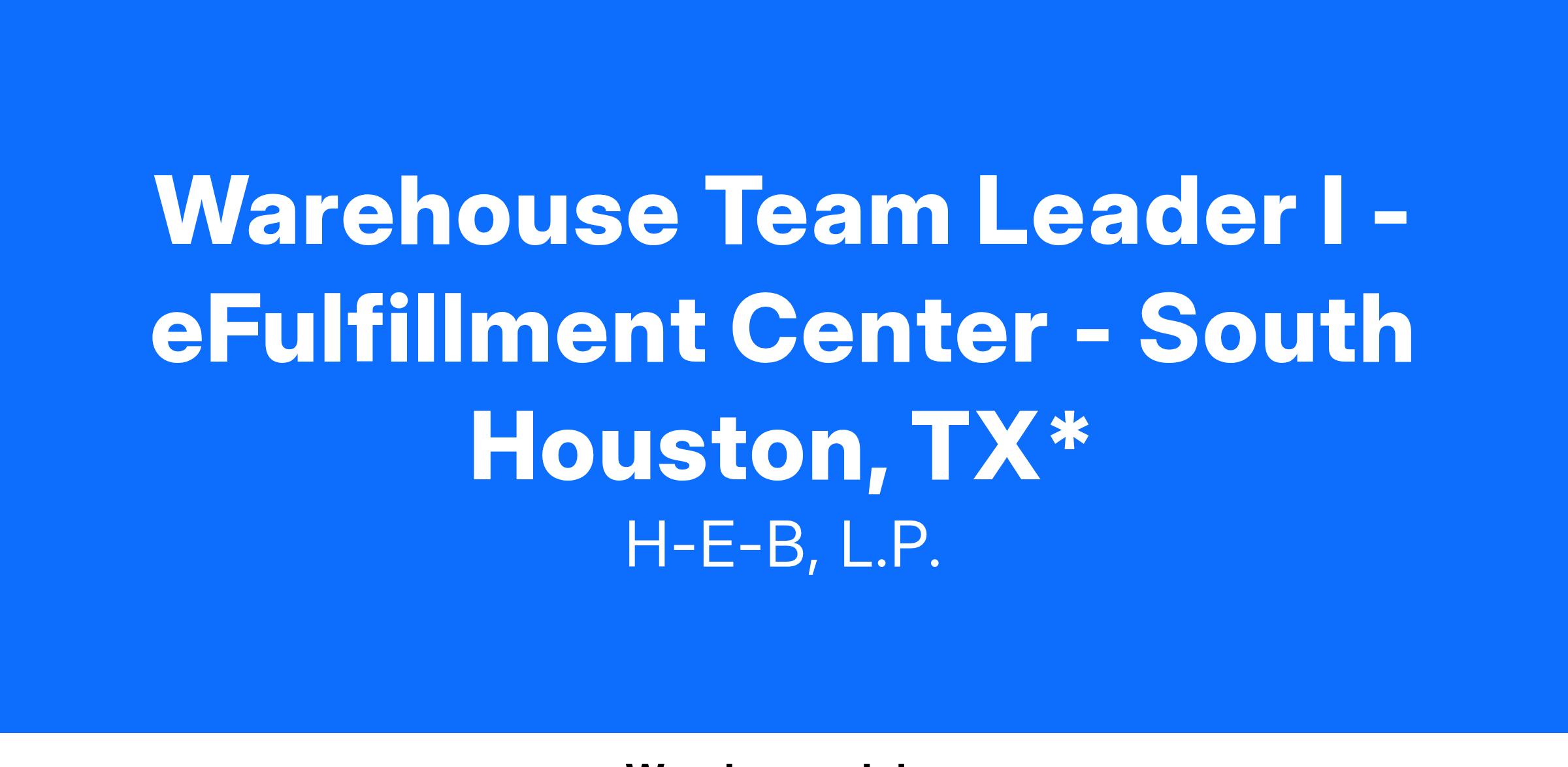 Warehouse Team Leader I - eFulfillment Center - South Houston, TX*